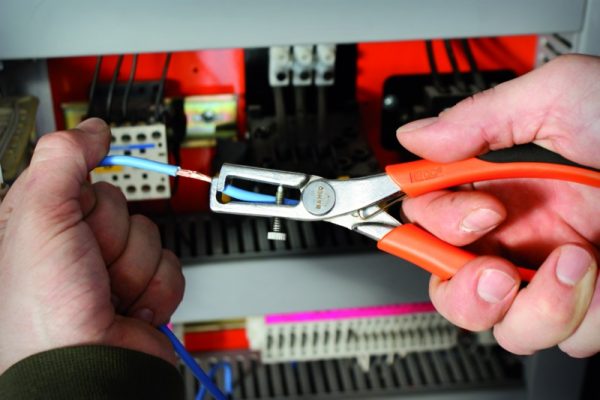 Açma/kapama özellikli yay ile kablo sıyırma pensesi